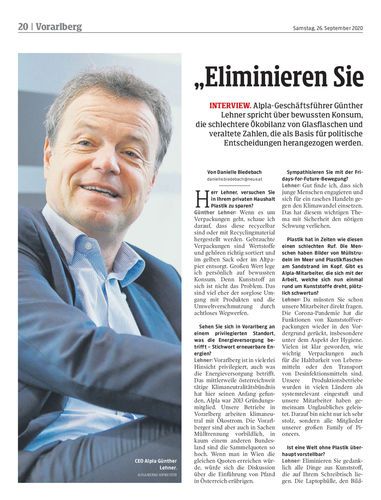 Interview. Alpla-Geschäftsführer Günther Lehner spricht über bewussten Konsum,