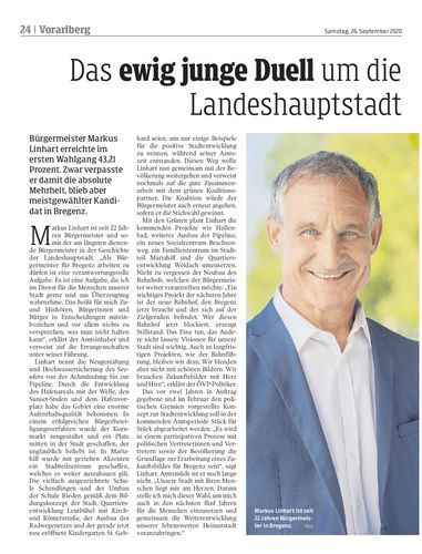 In Bregenz treten Amtsinhaber Markus Linhart und Herausforderer Michael Ritsch zum vierten Mal gegeneinander an. Nach 2005 kommt es am Sonntag zum zweiten Mal zu einer Stichwahl zwischen dem Bürgermeister und dem Stadtrat.