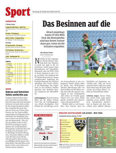 Altach empfängt heute (17 Uhr) WSG Tirol. Die Rheindörfler sind laut ihrem Trainer dann gut, wenn sie die Initiative ergreifen.