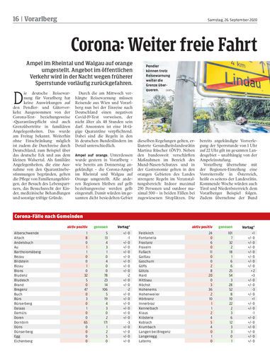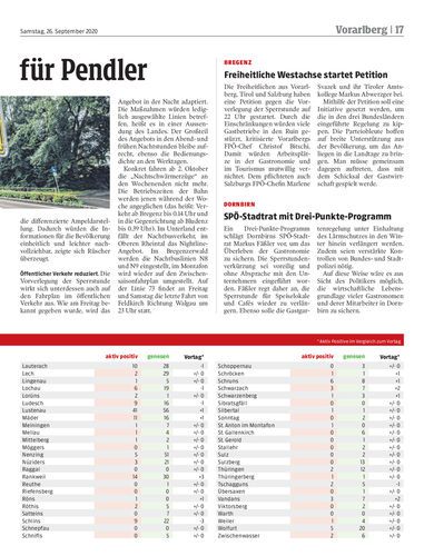 Ampel im Rheintal und Walgau auf orange umgestellt. Angebot im öffentlichen Verkehr wird in der Nacht wegen früherer Sperrstunde vorläufig zurückgefahren.
