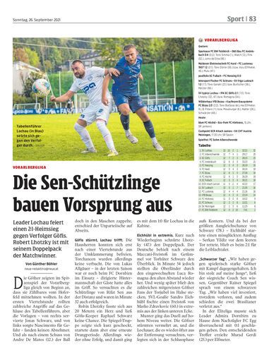 Leader Lochau feiert einen 2:1-Heimsieg gegen Verfolger Göfis. Robert Lhotzky ist mit seinem Doppelpack der Matchwinner.