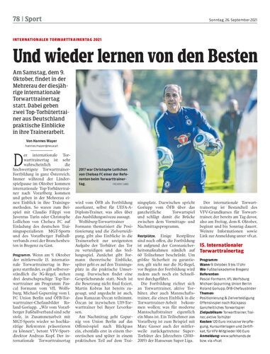 Am Samstag, dem 9. Oktober, findet in der Mehrerau der diesjährige internationale Torwarttrainertag statt. Dabei geben zwei Top-Torhütertrainer aus Deutschland praktische Einblicke in ihre Trainerarbeit.