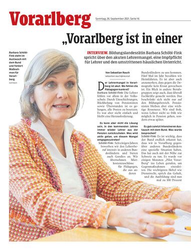 Interview. Bildungslandesrätin Barbara Schöbi-Fink spricht über den akuten Lehrermangel, eine Impfpflicht für Lehrer und den umstrittenen häuslichen Unterricht.