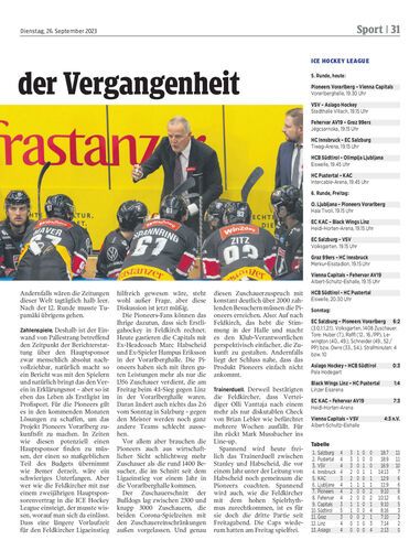 Nach der 2:6-Niederlage vom Sonntag empfangen die Pioneers Vorarlberg heute um 19.30 Uhr die Vienna Capitals. Die Wiener reisen mit Ex-Pioneers-Headcoach Mark Habscheid und Ex-Pioneers-Spieler Hampus Eriksson an. Derweil hat sich Pioneers-Kapitän Alexander Pallestrang zu Wort gemeldet.