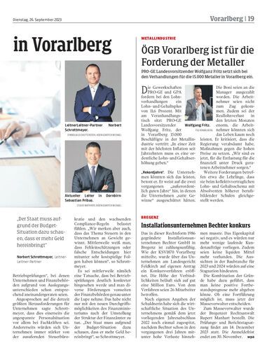 PRO-GE Landesvorsitzender Wolfganz Fritz setzt sich bei den Verhandlungen für die 15.000 Metaller in Vorarlberg ein.