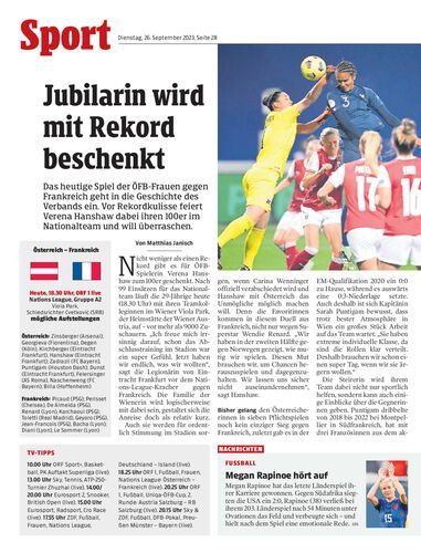 Das heutige Spiel der ÖFB-Frauen gegen Frankreich geht in die Geschichte des Verbands ein. Vor Rekordkulisse feiert Verena Hanshaw dabei ihren 100er im Nationalteam und will überraschen.