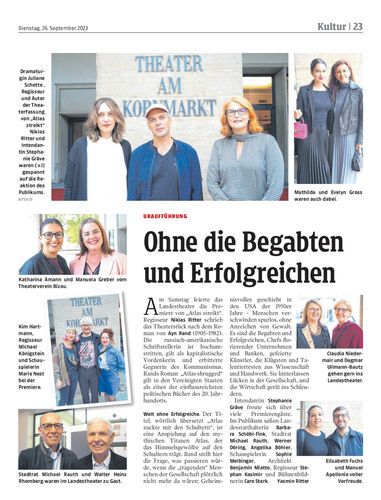Am Samstag eröffnete das Landestheater mit der Uraufführung „Atlas streikt“ nach Ayn Rands Roman „Atlas shrugged“ die Spielzeit.