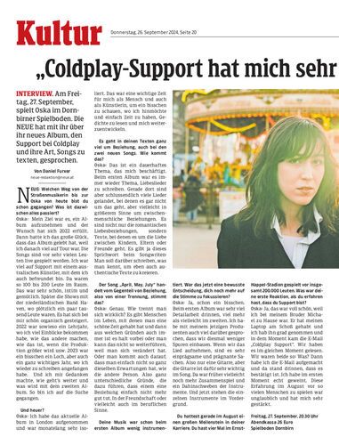 Interview. Am Freitag, 27. September, spielt Oska im Dornbirner Spielboden. Die NEUE hat mit ihr über ihr neues Album, den Support bei Coldplay und ihre Art, Songs zu texten, gesprochen.