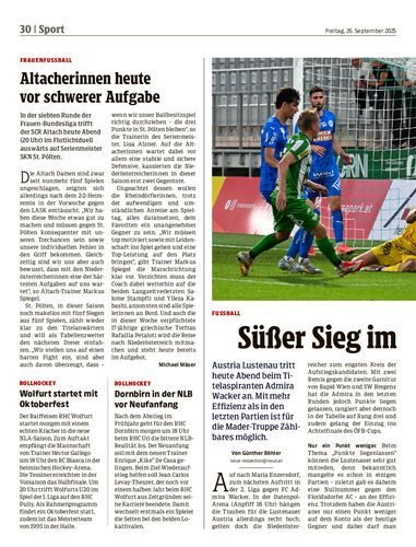 In der siebten Runde der Frauen-Bundesliga trifft der SCR Altach heute Abend (20 Uhr) im Flutlichtduell auswärts auf Serienmeister SKN St. Pölten.