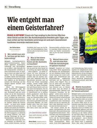 Frage & Antwort. Kaum ein Tag verging in den letzten Wochen ohne Unfall auf der A14. Die Autobahnpolizei Dornbirn gibt Tipps, wie man sicher auf der Autobahn unterwegs ist und auch Ausnahmesituationen souverän meistern kann.
