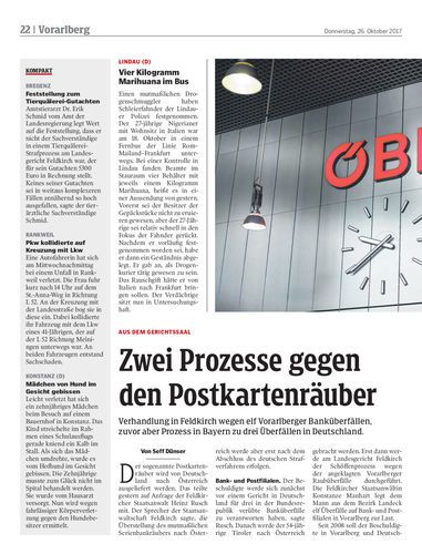 Verhandlung in Feldkirch wegen elf Vorarlberger Banküberfällen,