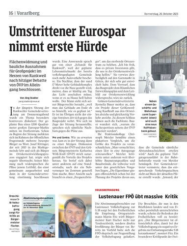 Flächenwidmung und bauliche Ausnahmen für Großprojekt im Herzen von Rankweil nach hitziger Debatte von ÖVP im Alleingang beschlossen.