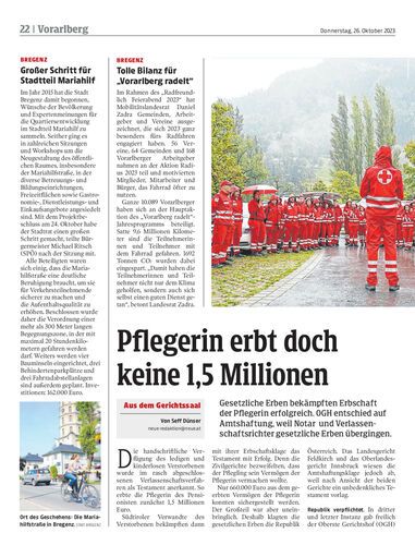Gesetzliche Erben bekämpften Erbschaft der Pflegerin erfolgreich. OGH entschied auf Amtshaftung, weil Notar und Verlassenschaftsrichter gesetzliche Erben übergingen.