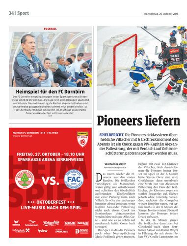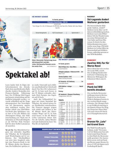 Spielbericht. Die Pioneers deklassieren überhebliche Villacher mit 6:1. Schreckmoment des Abends ist ein Check gegen PIV-Kapitän Alexander Pallestrang, der mit Verdacht auf Gehirnerschütterung abtransportiert werden muss.