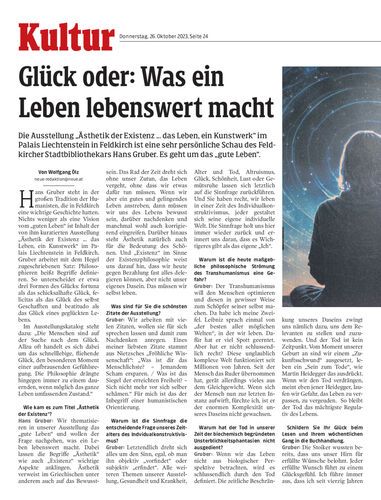 Die Ausstellung „Ästhetik der Existenz ... das Leben, ein Kunstwerk“ im Palais Liechtenstein in Feldkirch ist eine sehr persönliche Schau des Feldkircher Stadtbibliothekars Hans Gruber. Es geht um das „gute Leben“.