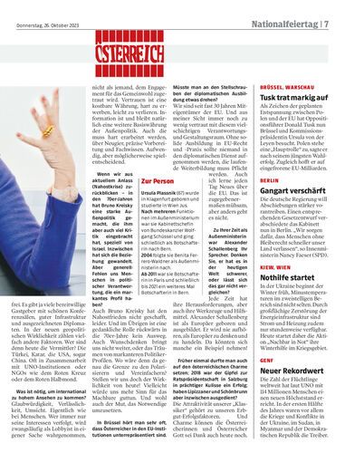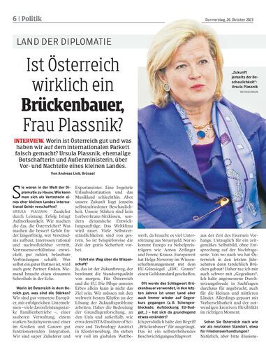 Worin ist Österreich gut und was haben wir auf dem internationalen Parkett falsch gemacht? Ursula Plassnik, ehemalige Botschafterin und Außenministerin, über Vor- und Nachteile eines kleinen Landes. Von Andreas Lieb, Brüssel