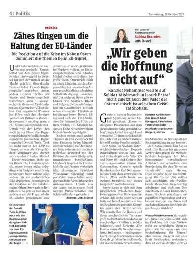 Kanzler Nehammer weilt auf Solidaritätsbesuch in Israel. Er traf vor allem auch den Vater der österreichisch- israelischen Geisel Tal Shoham.