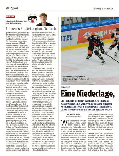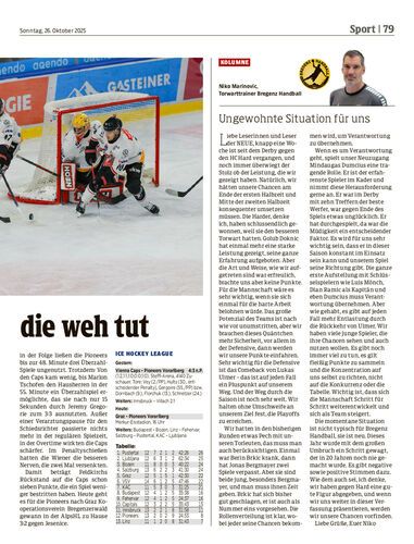Die Pioneers geben in Wien eine 3:1-Führung aus der Hand und verlieren gegen den direkten Konkurrenten noch 3:4 nach Penaltyschießen. Damit verlieren die Feldkircher den Anschluss.