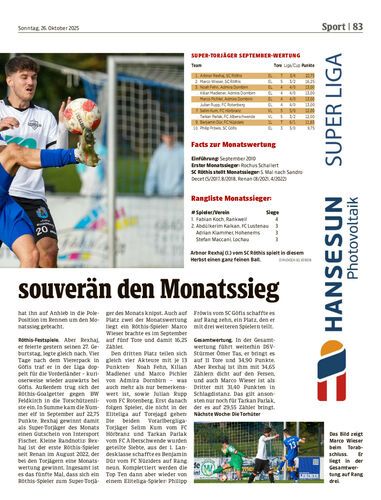 Ömer Tas führt weiterhin die Gesamtwertung bei den Torjägern in der Hansesun Super Liga an. Knipser der Stunde ist allerdings Arbnor Rexhaj, der sich den Monatssieg holte.