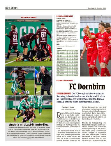 Spielbericht. Der FC Dornbirn sicherte sich am Samstag in beeindruckender Manier drei Punkte im Heimspiel gegen Seekirchen. Kapitän Tamas Herbaly erzielte einen lupenreinen Hattrick.