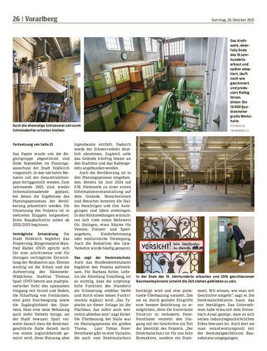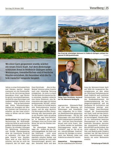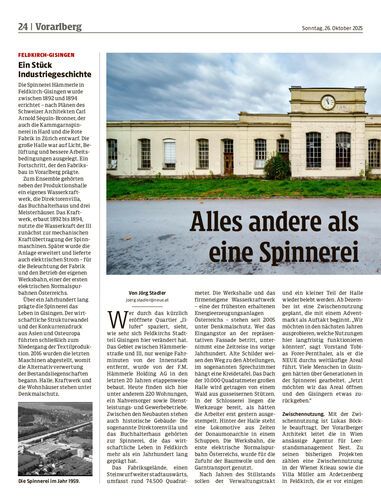 Wo einst Garn gesponnen wurde, wächst ein neues Stück Stadt. Auf dem denkmalgeschützten Areal in Feldkirch-Gisingen sollen Wohnungen, Gewerbeflächen und öffentliche Räume entstehen. Ab Dezember wird die Fabrik zunächst temporär bespielt.