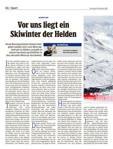 Head-Rennsportleiter Rainer Salzgeber meldet sich vom Weltcup-Auftakt in Sölden und gibt in einem Gastbeitrag Einblicke in das aktuelle Weltcup-Geschehen.
