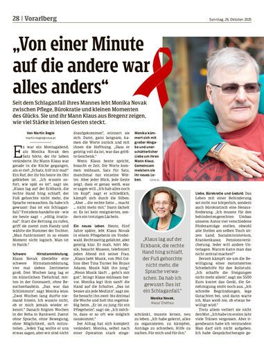 Seit dem Schlaganfall ihres Mannes lebt Monika Novak zwischen Pflege, Bürokratie und kleinen Momenten des Glücks. Sie und ihr Mann Klaus aus Bregenz zeigen, wie viel Stärke in leisen Gesten steckt.