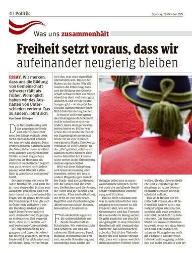 Freiheit setzt voraus, dass wir aufeinander neugierig bleiben