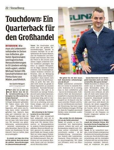Interview. Wie man als Lebensmittelhändler in Zeiten von Inflation, globalen Spannungen und logistischen Herausforderungen in 111 Ländern erfolgreich agiert, erklärt Michael Temel (39), Geschäftsführer der Firma Gunz aus
