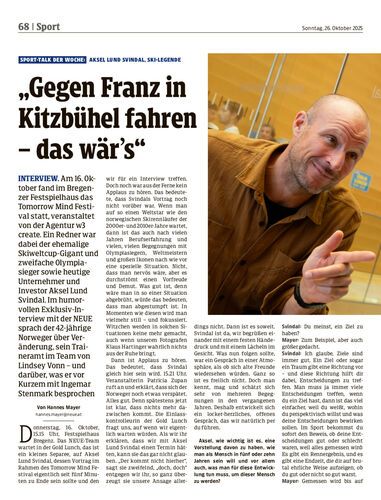 Interview. Am 16. Oktober fand im Bregenzer Festspielhaus das Tomorrow Mind Festival statt, veranstaltet von der Agentur w3 create. Ein Redner war dabei der ehemalige Skiweltcup-Gigant und zweifache Olympia-