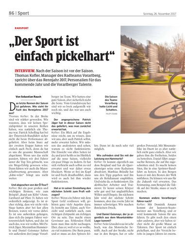 Interview. Nach der Saison ist vor der Saison. Thomas Kofler, Manager des Radteams Vorarlberg, spricht über das Rennjahr 2017, Personalien für das kommende Jahr und die Vorarlberger Talente.