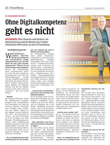 interview. Über Chancen und Risiken von Digitalisierung spricht Markus Ilg, Fachbereichsleiter Wirtschaft an der FH Vorarlberg.