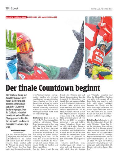 Die Vorbereitung auf den Olympiawinter neigt sich für Boardercrosser Markus Schairer (30) dem Ende entgegen. Der St. Gallenkircher ist bereit für seine Mission Olympiamedaille, die ihn antreibt und mehr fokussiert, als er es je war.