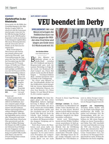 Spielbericht. Mit viel Moral erzwingen die Feldkircher kurz vor Schluss gegen die Wälder eine Overtime und siegen am Ende trotz 0:2-Rückstand mit 3:2.
