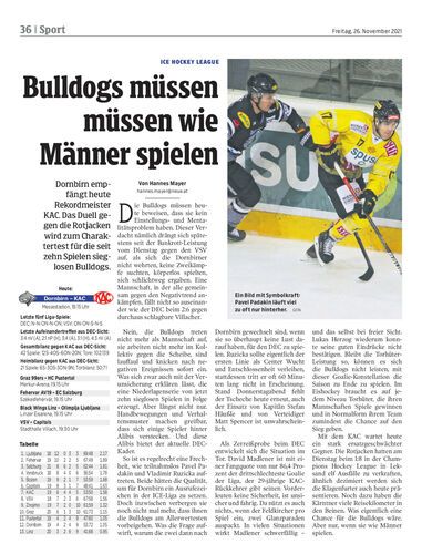 Rekordmeister KAC. Das Duell gegen die Rotjacken wird zum Charaktertest für die seit zehn Spielen sieglosen Bulldogs.