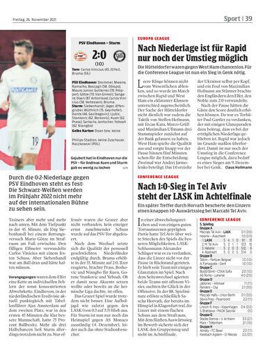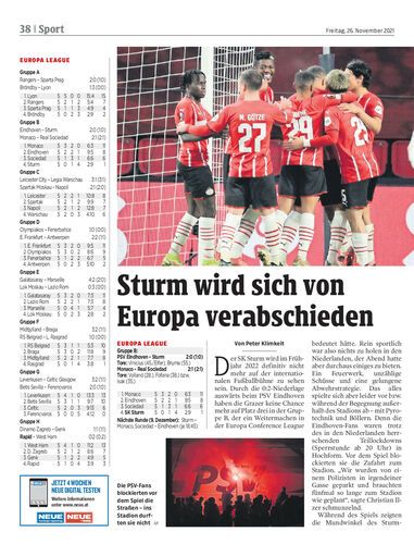 Durch die 0:2-Niederlage gegen PSV Eindhoven steht es fest: Die Schwarz-Weißen werden im Frühjahr 2022 nicht mehr auf der internationalen Bühne zu sehen sein.