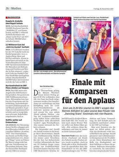 Erst um 21.20 Uhr startet in ORF 1 wegen der Herren-Abfahrt in Lake Louise das Finale von „Dancing Stars“. Erstmals mit vier Paaren.