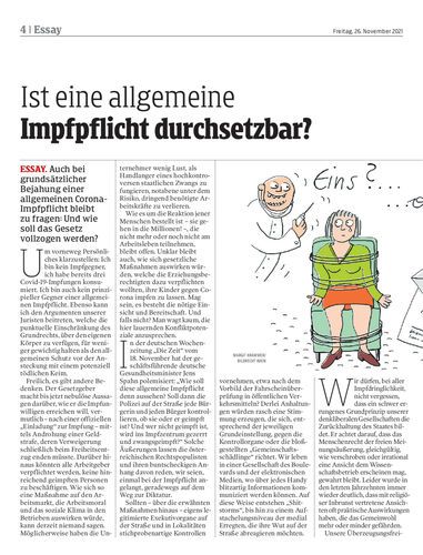 ESSAY. Auch bei grundsätzlicher Bejahung einer allgemeinen Corona-Impfpflicht bleibt zu fragen: Und wie soll das Gesetz vollzogen werden?