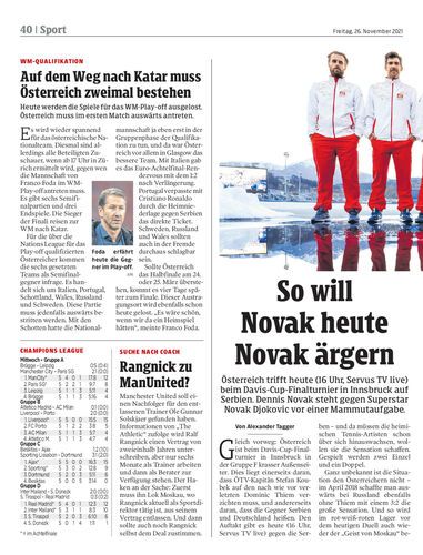Österreich trifft heute (16 Uhr, Servus TV live) beim Davis-Cup-Finalturnier in Innsbruck auf Serbien. Dennis Novak steht gegen Superstar Novak Djokovic vor einer Mammutaufgabe.