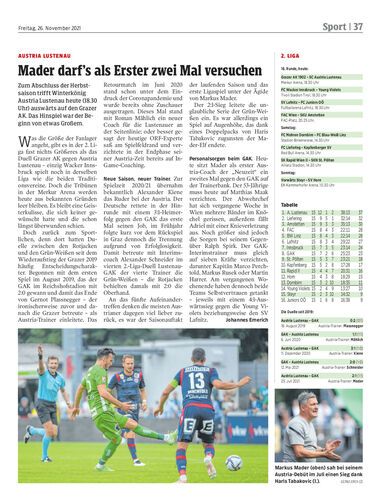 Zum Abschluss der Herbstsaison trifft Winterkönig Austria Lustenau heute (18.30 Uhr) auswärts auf den Grazer AK. Das Hinspiel war der Beginn von etwas Großem.