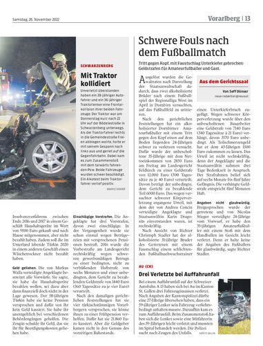 Tritt gegen Kopf, mit Faustschlag Unterkiefer gebrochen: Geldstrafen für Amateurfußballer und Gast.