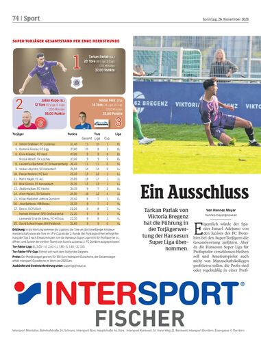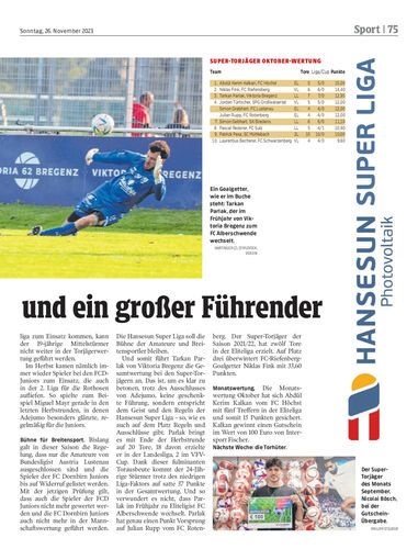 Tarkan Parlak von Viktoria Bregenz hat die Führung in der Torjägerwertung der Hansesun Super Liga übernommen.