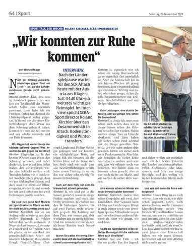 Nach der Länderspielpause wartet für den SCR Altach heute mit der Austria aus Klagenfurt (14.30 Uhr) ein weiteres wichtiges Heimspiel. Im Interview spricht SCRA-Sportdirektor Roland Kirchler über den Zusammenhalt in Altach, Bodenständigkeit und Wintertransfers.