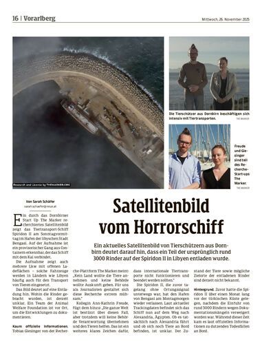 Ein aktuelles Satellitenbild von Tierschützern aus Dornbirn deutet darauf hin, dass ein Teil der ursprünglich rund 3000 Rinder auf der Spiridon II in Libyen entladen wurde.