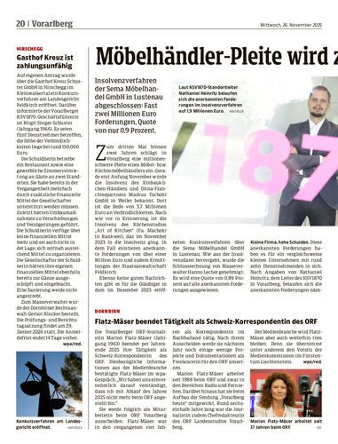 Insolvenzverfahren der Sema Möbelhandel GmbH in Lustenau abgeschlossen: Fast zwei Millionen Euro Forderungen, Quote von nur 0,9 Prozent.