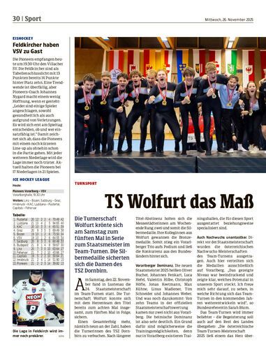Die Turnerschaft Wolfurt krönte sich am Samstag zum fünften Mal in Serie zum Staatsmeister im Team-Turnen. Die Silbermedaille sicherten sich die Damen des TSZ Dornbirn.
