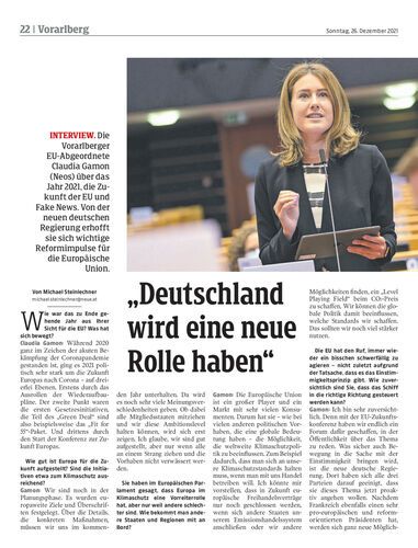 Interview. Die Vorarlberger EU-Abgeordnete Claudia Gamon (Neos) über das Jahr 2021, die Zukunft der EU und Fake News. Von der neuen deutschen Regierung erhofft sie sich wichtige Reformimpulse für die Europäische Union.