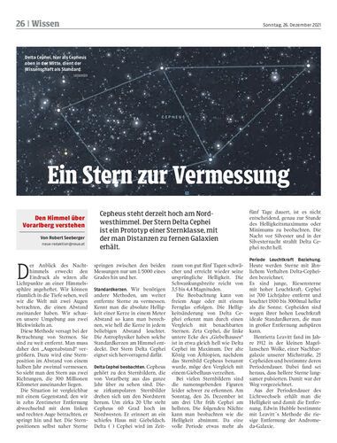 Cepheus steht derzeit hoch am Nordwesthimmel. Der Stern Delta Cephei ist ein Prototyp einer Sternklasse, mit der man Distanzen zu fernen Galaxien erhält.