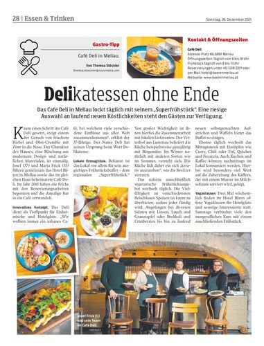Das Café Deli in Mellau lockt täglich mit seinem „Superfrühstück“. Eine riesige Auswahl an laufend neuen Köstlichkeiten steht den Gästen zur Verfügung.