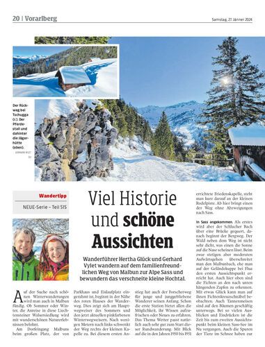 Wanderführer Hertha Glück und Gerhard Vylet wandern auf dem familienfreundlichen Weg von Malbun zur Alpe Sass und bewundern das verschneite kleine Hochtal.